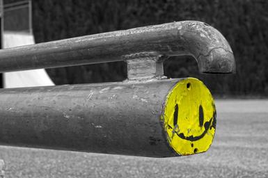 Keywords: smiley emoticon skateboard black and white emotion smile face yellow joy