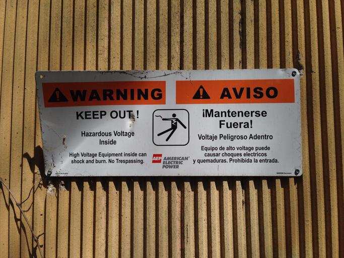 Keywords: warning aviso sign aep text writing street sign Upper Arlington, OH Upper Arlington, OH