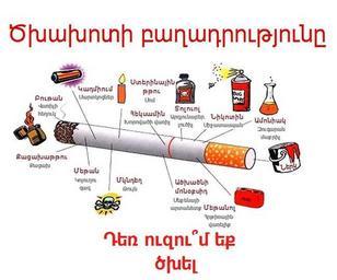 | Keywords: Smoking Kills-hy.jpg hy Ծխելը վնասակա է առողջությանը Ծխախոտի բաղադ իչնե ից ո ոշնե ը կա ելի է տեսնել այս պատկե ում en Harmful Health Effects Of Smoking Cigarettes Chemicals in Cigarettes What They Are and How They Harm Us As smokers we don't think about the chemicals in cigarettes We think about how cigarettes help us cope with the stress of daily life how they calm us down when we're angry help us relax at the end of a long day comfort us when we're sad or lonely Harmful chemicals in cigarettes No we don't think much about that he truth of the matter is that smoking does the opposite of just about everything we give it credit for When the chemicals in cigarettes are inhaled they put our bodies into a state of physical stress by sending literally thousands of poisons toxic metals and carcinogens coursing through our bloodstream with every puff we take And those chemicals affect everything from blood pressure and pulse rate to the health of our organs and immune system While researchers are still working to uncover all of the hazards cigarettes present to human life we do know that air tainted with cigarette smoke is dangerous for anyone who breathes it -- smoker or not Let's take a closer look at some of the harmful chemicals in cigarettes and how they affect our health A carcinogen is defined as any substance that can cause or aggravate cancer Approximately 60 of the chemicals in cigarettes are known to cause cancer TSNAs Tobacco-specific N-nitrosamines TSNAs are known to be some of the most potent carcinogens present in smokeless tobacco snuff and tobacco smoke Benzene Benzene can be found in pesticides and gasoline It is present in high levels in cigarette smoke and accounts for half of all human exposure to this hazardous chemical Pesticides Pesticides are used on our lawns and gardens and inhaled into our lungs via cigarette smoke Formaldehyde Formaldehyde is a chemical used to preserve dead bodies and is responsible for some of the nose throat and eye irritation smokers experience when breathing in cigarette smoke Chemicals in Cigarettes Toxic Metals Toxic / heavy metals are metals and metal compounds that have the potential to harm our health when absorbed or inhaled In very small amounts some of these metals support life but when taken in large amounts can become toxic Arsenic Commonly used in rat poison arsenic finds its way into cigarette smoke through some of the pesticides that are used in tobacco farming Cadmium Cadmium is a toxic heavy metal that is used in batteries Smokers typically have twice as much cadmium in their bodies as nonsmokers Chemicals in Cigarettes Radioactive Toxic Metals There are a couple of toxic metals in cigarette smoke that carry an extra punch of danger for anyone breathing it in they are radioactive Radioactive Cigarette Smoke Lead-210 Pb-210 and polonium-210 Po-210 are poisonous radioactive heavy metals that research has shown to be present in cigarette smoke Chemicals in Cigarettes Poisons Poison is defined as any substance that when introduced to a living organism causes severe physical distress or death Science has discovered approximately 200 poisonous gases in cigarette smoke Ammonia Ammonia compounds are commonly used in cleaning products and fertilizers Ammonia is also used to boost the impact of nicotine in manufactured cigarettes Carbon Monoxide Carbon monoxide is present in car exhaust and is lethal in very large amounts Cigarette smoke can contain high levels of carbon monoxide Hydrogen Cyanide Hydrogen cyanide was used to kill people in the gas chambers in Nazi Germany during World War II It can be found in cigarette smoke Nicotine Nicotine is a poison used in pesticides and is the addictive element in cigarettes A Word About Secondhand Smoke Also known as environmental tobacco smoke secondhand smoke is cigarette smoke inhaled by nonsmokers coming from either smoke exhaled by the smoker mainstream smoke and smoke produced by a smouldering cigarette sidestream smoke Secondhand smoke is known to contain at least 250 toxic chemicals including 50 cancer-causing chemicals According to the U S Surgeon General there is no risk-free level of exposure to secondhand smoke That means if you can smell cigarette smoke in the air it could be harming your health If you smoke use the tools below to help you get started on your smoke-free journey There is no time like the present to stop the madness that cigarette smoking is You'll be rewarded with benefits beyond what you can probably imagine and they'll start to occur faster than you think Within 20 minutes of your last cigarette your body will begin to heal and improvements to your mental and physical health will continue to grow with time invested in smoking cessation It is never too late to quit smoking Some_Kills jpg 2011-02-16 10 02 UTC Some_Kills jpg Projectandi derivative work Chaojoker <span class signature-talk >talk</span> Armenian translation Chaojoker Some_Kills jpg Tobacco-related graphics Toxins Etiology Diagrams in Armenian |