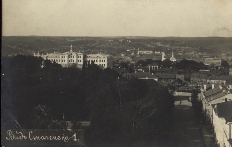| Keywords: Smolensk view 1.jpg en View of the central part of Smolensk One can see a woman's Diocesan School the trees a garden Blon area of the current Kozlov Street and Lenin Square ru Вид на цент альную часть Смоленска Видно женское епа хиальное училище за де евьями сад Блонье айон нынешних улицы Козлова и площади Ленина О игинальная отк ытка е установлены before 1917 года PD-RusEmpire 20th-century postcards of Russia Postcards of Smolensk | ||||