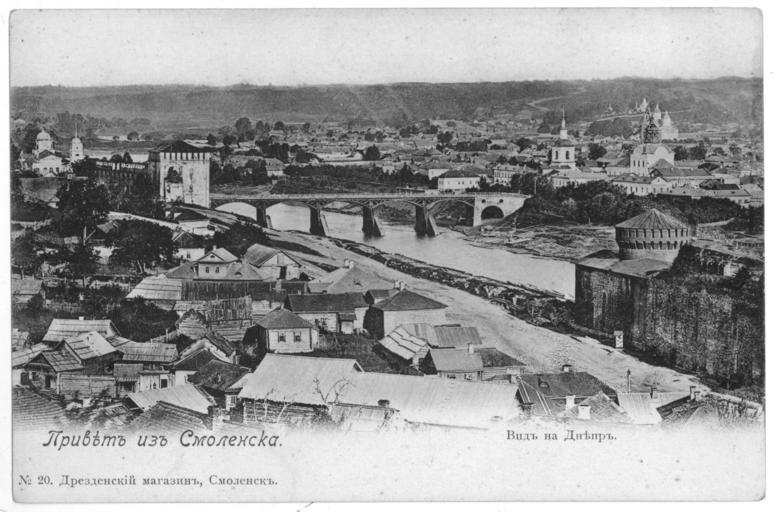 Keywords: Smolensk view 17.jpg en Type of Smolensk the area of the current street Soboleva the Dnipro River and the territory of present Zadneprovsky area ru Вид Смоленска айон нынешней улицы Соболева ека Днеп и те ито ия нынешнего Заднеп овского айона О игинальная отк ытка Д езденский магазин Смоленск before 1917 года PD-RusEmpire 20th-century postcards of Russia Postcards of Smolensk