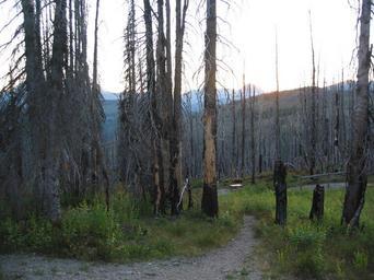 | Keywords: glacier national park glaciernationalpark hiking backcountry fifty mountain fiftymountain trail mountains glaciers rocks alpine scenery weather outdoor landscape forest A forest of burned snags is a reminder that the fires of 2003 cleared the way for the flowers below to flourish in sunshine. Photo: David Restivo, NPS A forest of burned snags is a reminder that the fires of 2003 cleared the way for the flowers below to flourish in sunshine. Photo: David Restivo, NPS | ||||