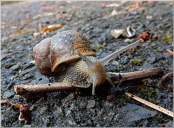 Keywords: snail garden pest nature gastropod shell brown spiral wildlife slime slimy crawl crawling slippery mollusk animal creepy food invertebrate antenna slug mucus leaf