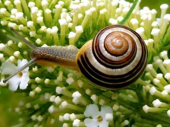 Keywords: snail garden snail shell snail shell nature slowly probe mollusk crawl animal summer creature spiral macro summer lilac white lilac flower garden