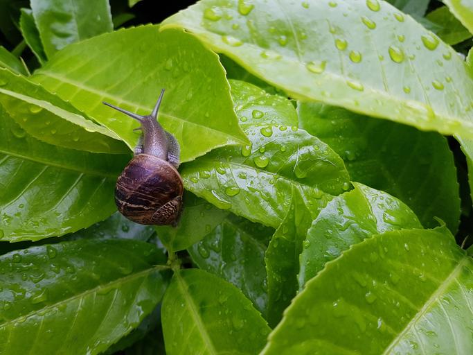 Keywords: snail green garden spiral animal plant plants rain leaf spring insect green color nature foliage flora