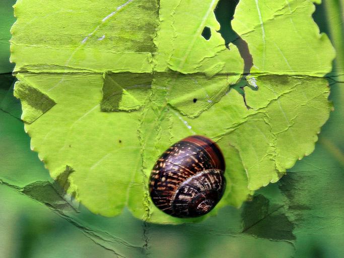 Keywords: snail leaf nature shell green animal slowly creature mollusk brown forest animal world plant leaves reptile housing garden summer close veiling old effect broken