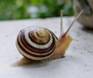 | Keywords: Snail on railing.jpg Photo of a land snail on a deck railing found in Mount Vernon Washington USA Shell is about 1/2 inch 13 mm wide I think it may be a Grovesnail Cepaea nemoralis but I'm not sure Can anyone identify it Alterations to image cropped and brightened slightly with Gimp image editor own 2009-09-23 Chetvorno Chris Burks I the author Chris Burks release this image to the public domain for any use whatever Cepaea Unidentified Helicidae | ||||