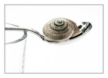 Keywords: snail shell animal mollusk close snail shell still still life food decoration deco decorative spoon cutlery chrome glass drinking glass reflection mirroring macro photography macro transparent object