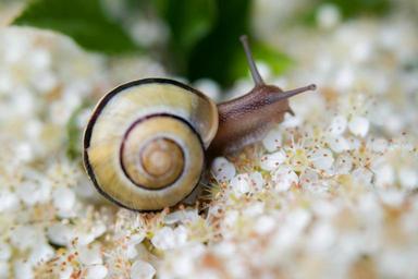 Keywords: snail shell flowers blütenmeer white crawl slowly probe eat slimy housing
