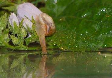 Keywords: snail shell mollusk close snail shell slowly snail shells nature animal creature invertebrates garden forest flowers grass macro water mirroring reflection drink thirst macro photography pond raindrop leaves