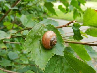 Keywords: snail winniczek crawl animal nature rain horns seashell tree leaf green foliage
