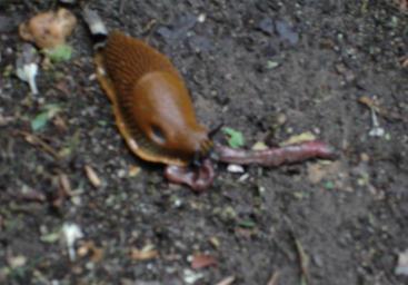 Keywords: Snail worm.JPG en This image shows how a slug is sucking juices from a dead earthworm Own 2009-09-01 Unidentified Arion Gastropoda eating Unidentified Annelida