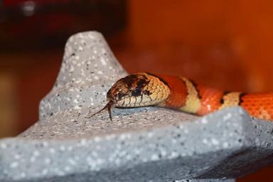 Keywords: snake non toxic constrictor reptile terraristik yellow king snake red scale terrarium creature head tongue close natter