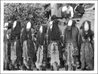 | Keywords: Snake priests in line before Kiva at the pueblo of Walpi, Arizona, ca.1897 (CHS-4650).jpg en <br> Snake priests in line before Kiva at the pueblo of Walpi Arizona ca 1897 Photograph of snake priests in line before the Kiva at the pueblo of Walpi Arizona ca 1897 Seven snake priests are visible from the back as they face the kiva They wear kilts with animal pelts hanging from the back distinctive white feathers in their long dark hair and bracelets about their upper arms Several white spectators are visible in the background Call number CHS-4650 Legacy record ID chs-m16974; USC-1-1-1-13888 Photographer James George Wharton Filename CHS-4650 Coverage date circa 1897 Part of collection California Historical Society Collection 1860-1960 Type images Geographic subject city or populated place Walpi Repository name USC Libraries Special Collections Accession number 4650 Microfiche number 1-170- Archival file chs_Volume97/CHS-4650 tiff Part of subcollection Title Insurance and Trust and C C Pierce Photography Collection 1860-1960 Repository address Doheny Memorial Library Los Angeles CA 90089-0189 Geographic subject country USA Format aacr2 3 photographs glass photonegative photoprints b w ; 17 x 22 cm 21 x 26 cm Rights Digitally reproduced by the USC Digital Library; From the California Historical Society Collection at the University of Southern California Subject adlf tribal areas Project USC Repository email specol usc edu Identifying number unidentified no James-316 Contributing entity California Historical Society Date created circa 1897 Publisher of the digital version University of Southern California Libraries Format aat photographic prints; photographs Geographic subject state Arizona Subject file heading Indians -- Hopi -- Snake Dance Geographic coordinates -110 397217 35 832218 Format glass plate negatives Access conditions Send requests to address or e-mail given Phone 213 821-2366; fax 213 740-2343 Geographic subject county Navajo Subject lcsh Indians of North America; Hopi Indians; Rites and ceremonies; Men Subject Hopi Indians; Hopi Snake Dance; Hopi Snake Dance Ceremony circa 1897 date created George Wharton James 1858 1923 http //digitallibrary usc edu/cdm/ref/collection/p15799coll65/id/16893 PD-old-70-1923 Images from USC Digital Library uploaded by Fæ Photographs by George Wharton James California Historical Society Collection 1860-1960 Glass plate negatives |