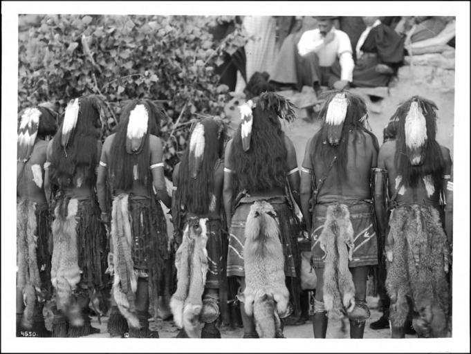 Keywords: Snake priests in line before Kiva at the pueblo of Walpi, Arizona, ca.1897 (CHS-4650).jpg en <br> Snake priests in line before Kiva at the pueblo of Walpi Arizona ca 1897 Photograph of snake priests in line before the Kiva at the pueblo of Walpi Arizona ca 1897 Seven snake priests are visible from the back as they face the kiva They wear kilts with animal pelts hanging from the back distinctive white feathers in their long dark hair and bracelets about their upper arms Several white spectators are visible in the background Call number CHS-4650 Legacy record ID chs-m16974; USC-1-1-1-13888 Photographer James George Wharton Filename CHS-4650 Coverage date circa 1897 Part of collection California Historical Society Collection 1860-1960 Type images Geographic subject city or populated place Walpi Repository name USC Libraries Special Collections Accession number 4650 Microfiche number 1-170- Archival file chs_Volume97/CHS-4650 tiff Part of subcollection Title Insurance and Trust and C C Pierce Photography Collection 1860-1960 Repository address Doheny Memorial Library Los Angeles CA 90089-0189 Geographic subject country USA Format aacr2 3 photographs glass photonegative photoprints b w ; 17 x 22 cm 21 x 26 cm Rights Digitally reproduced by the USC Digital Library; From the California Historical Society Collection at the University of Southern California Subject adlf tribal areas Project USC Repository email specol usc edu Identifying number unidentified no James-316 Contributing entity California Historical Society Date created circa 1897 Publisher of the digital version University of Southern California Libraries Format aat photographic prints; photographs Geographic subject state Arizona Subject file heading Indians -- Hopi -- Snake Dance Geographic coordinates -110 397217 35 832218 Format glass plate negatives Access conditions Send requests to address or e-mail given Phone 213 821-2366; fax 213 740-2343 Geographic subject county Navajo Subject lcsh Indians of North America; Hopi Indians; Rites and ceremonies; Men Subject Hopi Indians; Hopi Snake Dance; Hopi Snake Dance Ceremony circa 1897 date created George Wharton James 1858 1923 http //digitallibrary usc edu/cdm/ref/collection/p15799coll65/id/16893 PD-old-70-1923 Images from USC Digital Library uploaded by Fæ Photographs by George Wharton James California Historical Society Collection 1860-1960 Glass plate negatives |