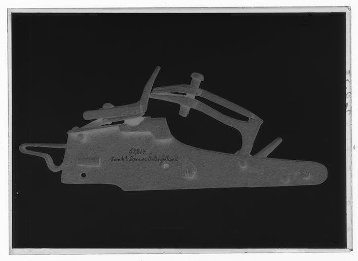 Keywords: Snapplås, springlås, utfjäderslås, Sverige, 1600-talets början - Livrustkammaren - 10016-negative.tif Snapplås av stål med plant kantigt låsbleck bakåt utdraget till en smalare avrundad spets Vinkelböjd hane av svensk typ med lång lös inlaxad överkäke Lång hanfot med spår av inlagd koppartråd Droppformig studel med försänkt spår längs mitten Kombinerad eldståls- och slagfjäder nedböjd i båge vid hanfoten och framför låsblecket Kantig fängpanna med skålformig gavel med två tvärrränder längs överkanten och därnedanför radiella filade spår runt kanten Plant fängpannelock med fjäderbelastat omvändningseldstål original caption early other date century 17 steel e2 - eldvapen - lås material stål g 630 size mm 240 108 LRK Made in Sweden 2003 place of origin original filename LN_B11691_014571 38580 inventory number LRK 3699 10016 CC0 Snapplås springlås utfjäderslås Sverige 1600-talets början - Livrustkammaren - 10016 tif <gallery caption Different images of same object > File Snapplås springlås utfjäderslås Sverige 1600-talets början - Livrustkammaren - 78504 tif File Snapplås springlås utfjäderslås Sverige 1600-talets början - Livrustkammaren - 1456 tif File Snapplås springlås utfjäderslås Sverige 1600-talets början - Livrustkammaren - 61381 tif </gallery> |