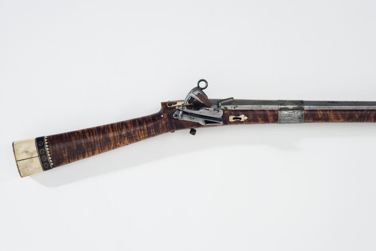 | Keywords: Snapplåsbössa - Livrustkammaren - 13983.jpg Rund slätborrad pipa av stål med åttsidig kammare Pipan plan på ovansidan i hela sin längd Kammarens ovansida baktill rundslipad Rester av nött etsad dekor i form av blomsterornament på kammarens ovansida På kammarens ovansida etsat A MORETTA Stockel sid 214 Två breda pipband av försilvrad mässing <br/><br/>Snapplås av katalantyp av stål Låsbleck långt och konturerat plant Svagt böjd hane med lös överkäke Ringformig käkskruv På hanfotens tå hake Batteri med plant eldstål med räfflad framsida Utvändig slagfjäder <br/>Fästning Två låsskruvar av stål <br/>Rak kort avtryckare av stål med kulformig ände <br/><br/>Helstock av flammigt trä som slutar 114 mm från pipans mynning Den främre delen av mörkt horn l 113 mm Rak smal kolv med rundad tresidigt tvärsnitt Bakplåt och bakre delen av kolven av vitt ben framför den band av mörkt horn med runda inläggningar av förgylld mässing med rosettmönster i niello och uddkant av vitt ben På vardera sidan om svansskruvbladet ornament av ben med inlagda cirklar av förgylld mässing med rosett i niello Framför låset och på framstocken genomgående rektangulärt hål för gehäng med konturerad skoning av ben Avtryckarbleck av ben konturerade Låsskruvbrickor av konturerat ben <br/><br/>Tillbehör <br/>Laddstock av trä 914 mm lång med 81 mm lång doppsko av stål med knappformig avslutning Träbit i stället för flinta original caption snapplåsbössa - LRK 7710<br/> Nyckelord Bössa Snapplås Dekorerade Föremålsbild century 18 steel e127 - eldvapen - pipa lås och stockbeslag material stål - brass e78 - eldvapen - stockbeslag och stockdekor material mässing - wood e3 - eldvapen - stock material trä - horn e78 - eldvapen - stockbeslag och stockdekor material horn - bone e78 - eldvapen - stockbeslag och stockdekor material ben g 2260 size mm 1234 size mm 933 pipa size mm 135 LRK place of origin original filename lm_dig2175 43367 inventory number LRK 7710 13983 CC-BY-SA Göran Schmidt <gallery caption Different images of same object > File Snapplåsbössa v sida - Livrustkammaren - 22546 jpg </gallery> Göran Schmidt Muzzle-loaders Musket images from Livrustkammaren color images Flintlock muskets images from Livrustkammaren Media contributed by LSH unmatched material Media contributed by LSH dim-with multiple size templates Media contributed by LSH unmatched creator Media contributed by LSH unmatched keyword Color images from Livrustkammaren Media contributed by LSH 2013-10 |