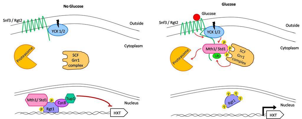 | Keywords: Snf3 img1.png Snf3 /Rgt2-singalling pathway In absence of glucose repressing complex composed of Rgt1 Mth1/Std1 Cyc8 and Tup1 blocks transcription of HXT genes When glucose Glu is present casein kinase is activated and phosphorylates Mth1/Std1 which is subsequently ubiquitinated and degraded by the proteasome allowing transcription to proceed own based on FEMS Microbiology Reviews Vol 32 4 Pages 673-704 2009-06-16 Cellular Biochemistry II talk diagram Cellular Biochemistry II en Original upload log en wikipedia For the Common Good page en wikipedia Snf3_img1 png wikitable - 11 19 16 June 2009 2 362 × 934 915 261 bytes Cellular Biochemistry II w en <nowiki> Snf3/Rgt2-singalling pathway In absence of glucose repressing complex composed of Rgt1 Mth1/Std1 Cyc8 and Tup1 blocks transcription of HXT genes When glucose Glu is present casein kinase is activated and phosphorylat </nowiki> Biochemistry Biology diagrams Fungal biochemistry |