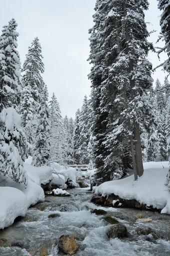 Keywords: snow alps haute-savoie winter landscape mountain ski winter landscape nature high alps white france snowy courchevel les 3 vallées fir sky clouds torrent water