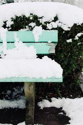 Keywords: snow bank winter snowy bench cold nature seat wintry white snowed in silent rest snowfall garden leisurely relaxation relax garden bench winter mood