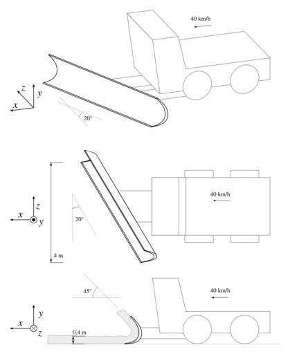 | Keywords: Snow blade truck conceptual drawing.svg  en A simple drawing of a snow blade truck with angles and coordinates for use in a mechanics exercise whose objective is the calculation of forces exerted by the deflection of the snow 2015-04 own Olivier Cleynen other versions cc-zero SVG physics Uploaded with UploadWizard Snowplows |