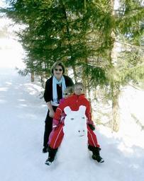 Keywords: snow children lilli sonnenburg winter riezlern cheerful woman snow man funny nature holiday tree green white red away hiking slide out snow suit scarf toboggan sunglasses
