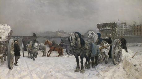 | Keywords: 'Snow Clearing by the Seine' by Christian Skredsvig, Bergen Kunstmuseum.JPG en Snow Clearing by the Seine by Christian Skredsvig 1880 oil on canvas Bergen Kunstmuseum own Christian Skredsvig 1880 PD-old-auto 1924 DEFAULTSORT Skredsvig Paintings from Norway in the Bergen Kunstmuseum Paintings by Christian Skredsvig Horse-drawn carts in art Paintings of people with snow | ||||