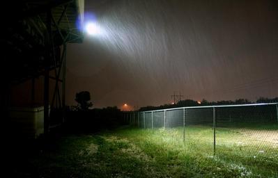 Keywords: snow night waco fog light easter spring winter fence Snow falling outside a football stadium in Waco, Texas. In April Snow falling outside a football stadium in Waco, Texas. In April