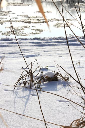 Keywords: snow ice frozen river glacier ice frozen winter white kry cold frost reeds plant