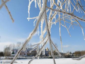 Keywords: snow and ice hanging tree blue sky