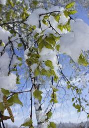 Keywords: snow in spring snow spring branch leaves