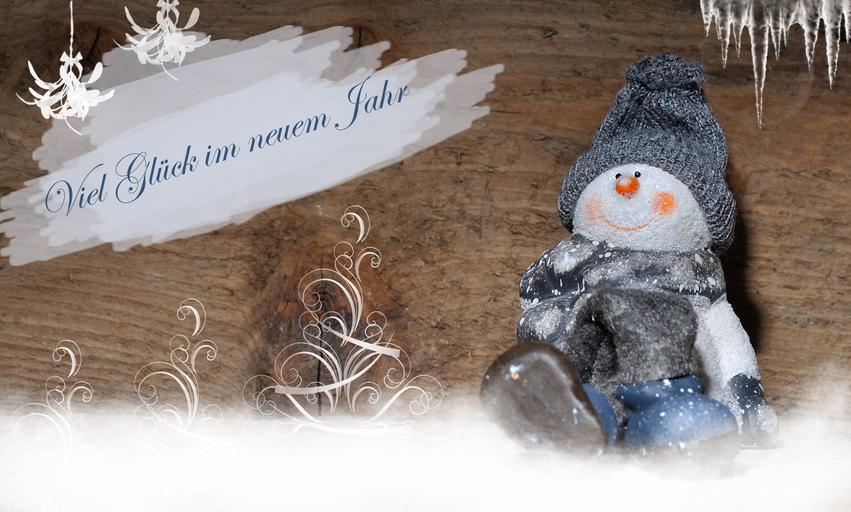 Keywords: snow man congratulations new year's day greeting card postcard wood