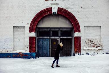 Keywords: snow street urban winter cold weather city season outdoors female adult road