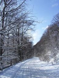 Keywords: snow winter beech mountain snowy road sunlight forest nature dazzle