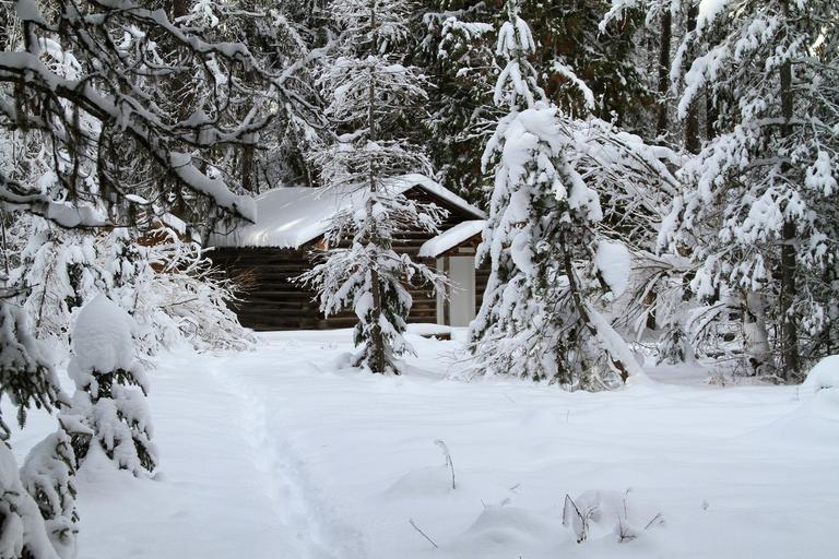 Keywords: snow winter cabin cold forest trees landscape scenic outdoors snowflake scene path