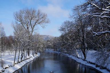 Keywords: snow winter danube river water flow silent tuttlingen germany