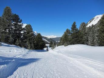 Keywords: snow winter ski trail landscape conifer trees cold outdoor white nature