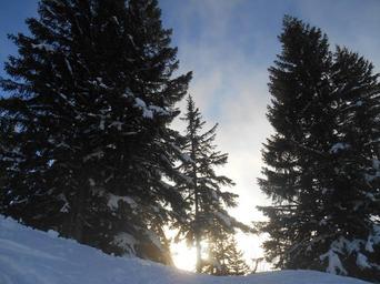 Keywords: snow winter sunset trees pine sun cold nature white season outdoor landscape forest frozen scenery christmas seasonal natural avoriaz france sky cloud