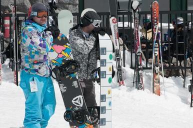 Keywords: south lake tahoe southlaketahoe california united states unitedstates At Sierra at Tahoe base station. Ski racks and coffee shop in background. At Sierra at Tahoe base station. Ski racks and coffee shop in background.