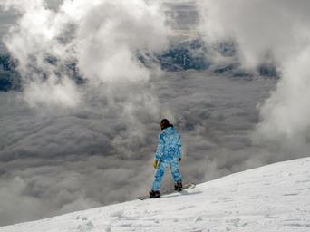 Keywords: snowboarding aerial view mountain clouds snowboard winter
