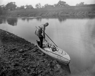 | Keywords: Snowden Slights placing gun in punt YORYM-S3.jpg Slights placing a punt gun in a punt He is wearing a loose country jacket and hat depicted people Snowden Slights depicted place 1900-1912 glass plate negative 125mm long edge x 100mm short edge institution Yorkshire Museum object history exhibition history credit line accession number YORYM S3 Images from the Sydney Harold Smith Photographic Archive held by York Museums Trust <br> York Museums Trust image PD-old-70-1923 PD-US Uploaded with UploadWizard Images from The Sydney Harold Smith Collection Waterfowl hunting Punts Snowden Slights |