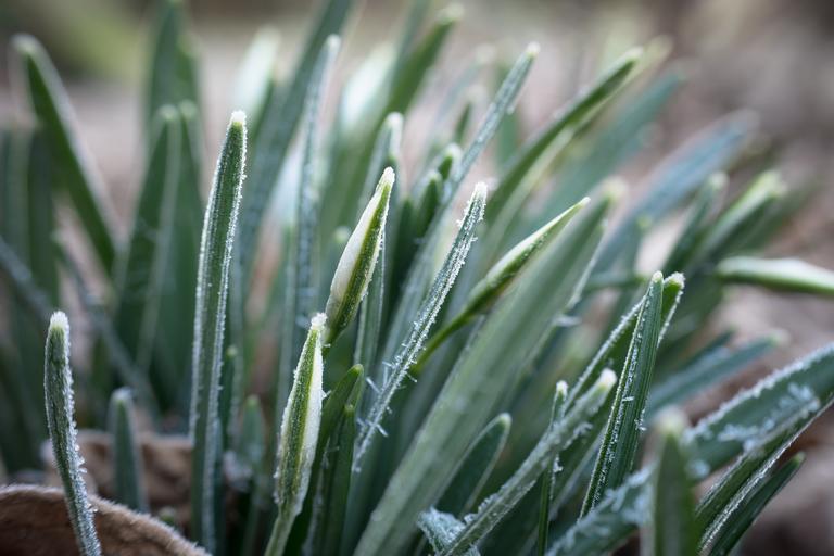 Keywords: snowdrop ice winter ripe leaves bud flowers cold frozen frost on frozen eiskristalle hoarfrost