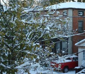 | Keywords: Snowstorm New Jersey October 2011 Number 7.jpg en An early snowstorm in late October 2011 in the northeastern United States dropped six inches of wet heavy snow on trees which had not shed their leaves The storm toppled trees downed power lines and left hundreds of thousands of homes without electricity or heat Photo branches with leaves heavily laden with snow were poised to break and snap power lines and other cables 2010-10-30 own Tomwsulcer cc-zero Uploaded with UploadWizard Snow storms Summit New Jersey 2011 in New Jersey Houses in New Jersey |