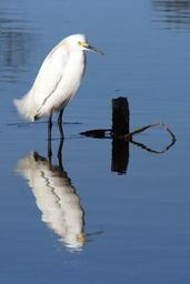 Keywords: snowy egret bird wildlife nature white standing reflection water coast portrait