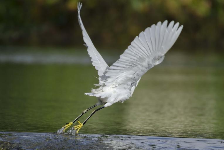 Keywords: snowy egret fly take off flap bird wildlife flying nature water waterbird outdoors feathers swamp neck graceful flight wings