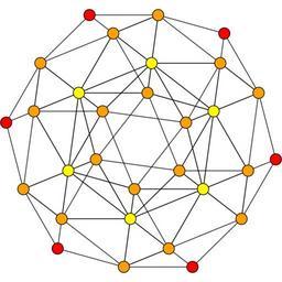 Keywords: Snub 24-cell D4.svg en en Snub 24-cell graph D4 Coxeter plane red orange yellow vertices have multiplicities of 1 3 6 own Tomruen Snub 24-cell Set of colored Coxeter plane graphs; 30 vertices