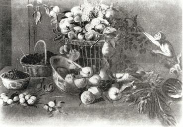 | Keywords: Snyders Monkey Among Fruit.JPG A Monkey Among Fruit Małpa wśród owoców Creator Frans Snyders s 1640 oil canvas cm 111 157 Catalogue of paintings removed from Poland by the German occupation authorities during the years 1939-1945 1 Foreign paintings / comp Władysław Tomkiewicz ; Ministry of Culture and Art Warsaw 1950 Editor Ministry of Culture and Art See also http //kolekcje mkidn gov pl/ Department of National Heritage Wartime losses an official webpage of Polish Ministry of Culture Art and National Heritage PD-Art PD-old-100 Still life paintings by Frans Snyders 17th-century foreign paintings lost in Poland during World War II 17th-century still life paintings in Poland 1640s still life paintings Paintings of monkeys |