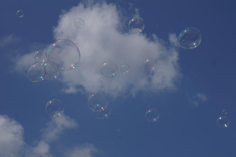 Keywords: soap bubbles sky blue weightless float airy ease fly blow cloud