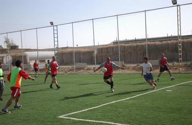 | Keywords: Soccer Game DVIDS23825.jpg en 2-1 Soldier on a soccer game against the Turkish team on Thursday 15 2006 at Forward Operating Base Marez Mosul Iraq Photo by Spc Yolanda Moreno Leon 138th MPAD 2006-06-20 Spc Yolanda Moreno Leon https //www dvidshub net/image/23825 23825 2006-06-21 02 21 MOSUL IQ PD-USGov Forward Operating Base Marez Images from DoD uploaded by Fæ |