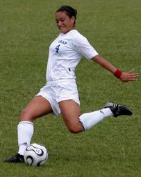 Keywords: soccer kick ball football competition player field female athlete concentration focus kicking activity action match